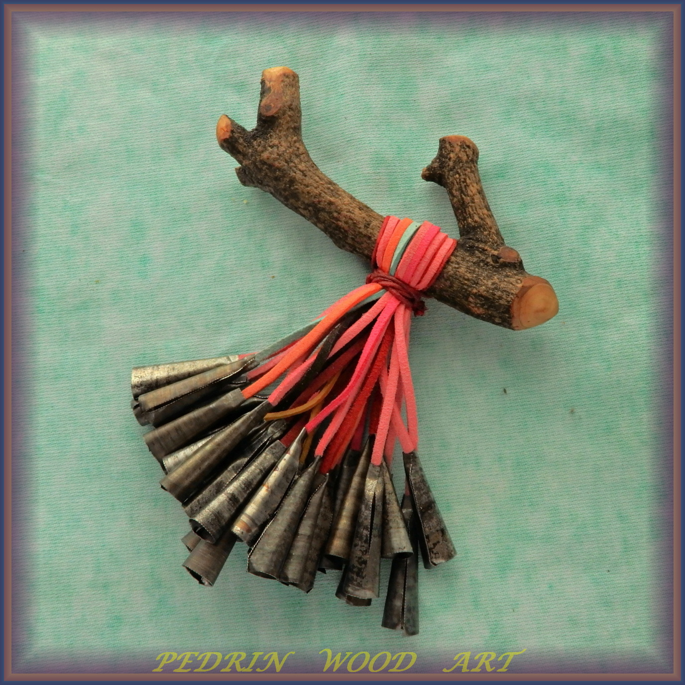Šamanské rolničky vyrobené z plechu .. kovového..měděného a hliníkového.....na kožených - imitace kůže - řemíncích.... - dřevo je OLIVOVNÍK .... z...
